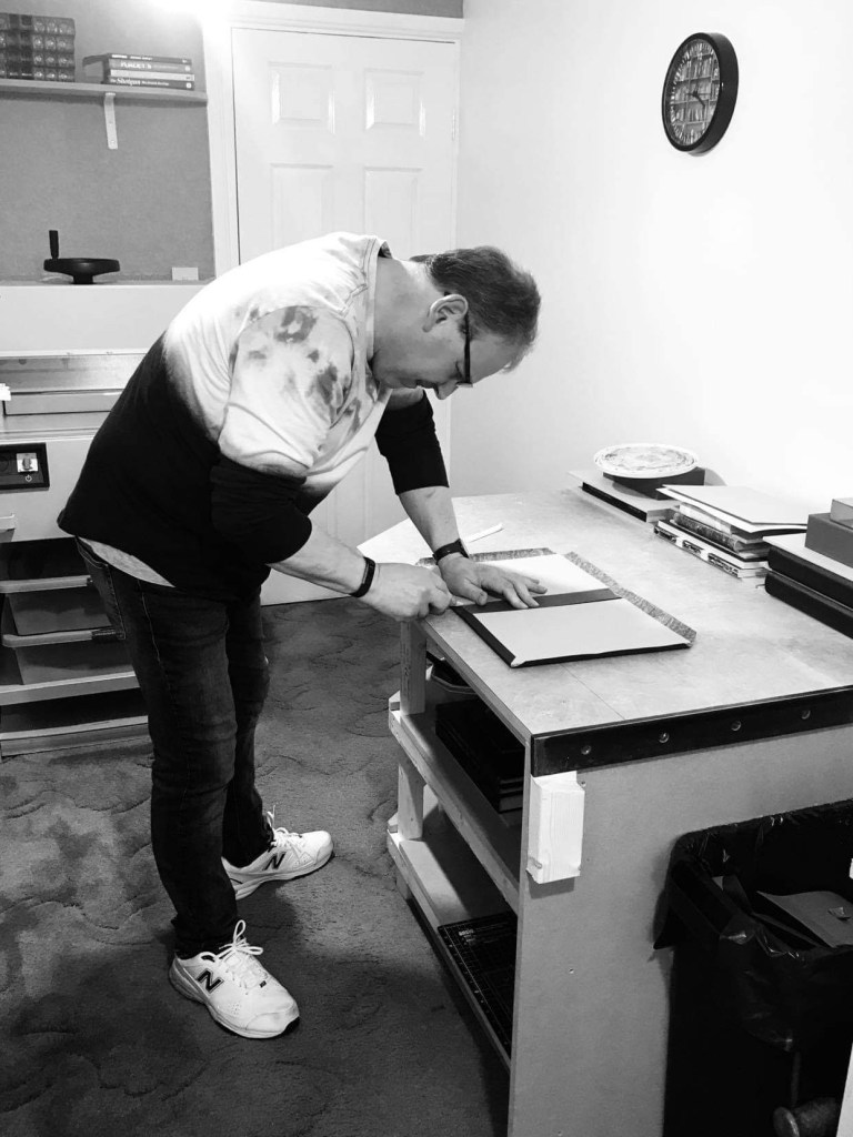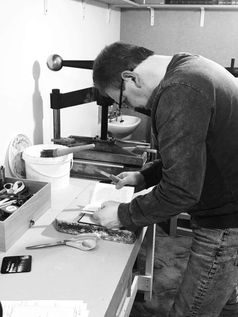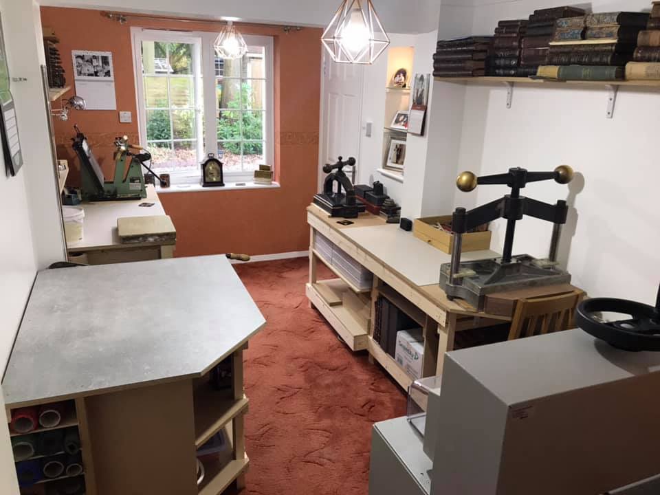 In 2020, the Abbey Bookbindery moved again, this time to Paul Berry’s home, the benefits of which include the fact that Mrs Berry can now bring him coffee!