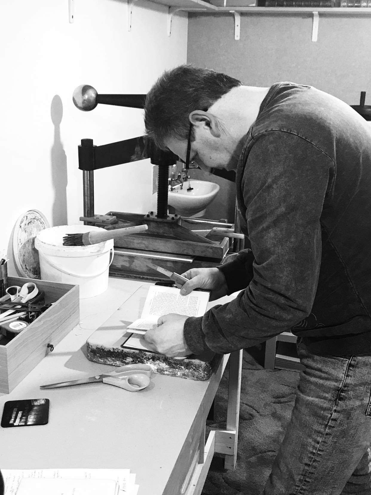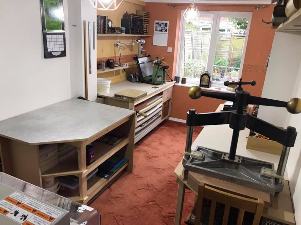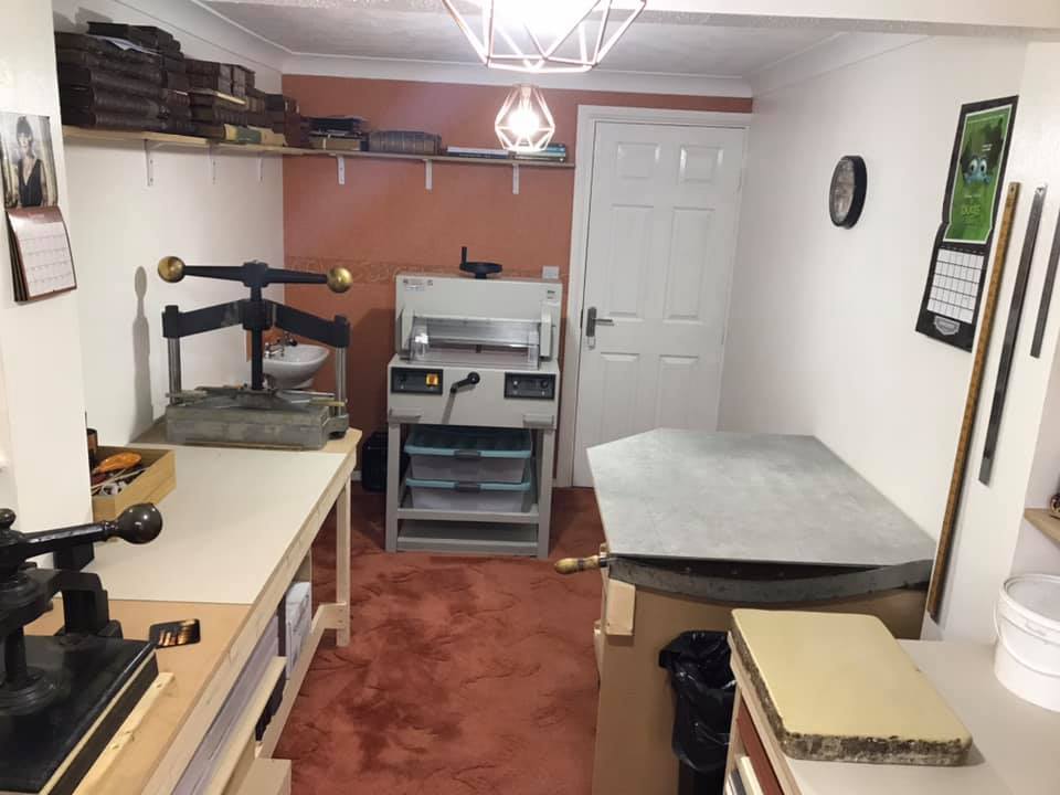 In 2020, the Abbey Bookbindery moved again, this time to Paul Berry’s home, the benefits of which include the fact that Mrs Berry can now bring him coffee!