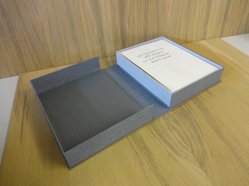 Our slipcases are custom-built to house your books, and can be covered in a variety of materials to complement the contents. The book is held inside with the spine visible, thus protecting the edges of the book from dust and sunlight.
